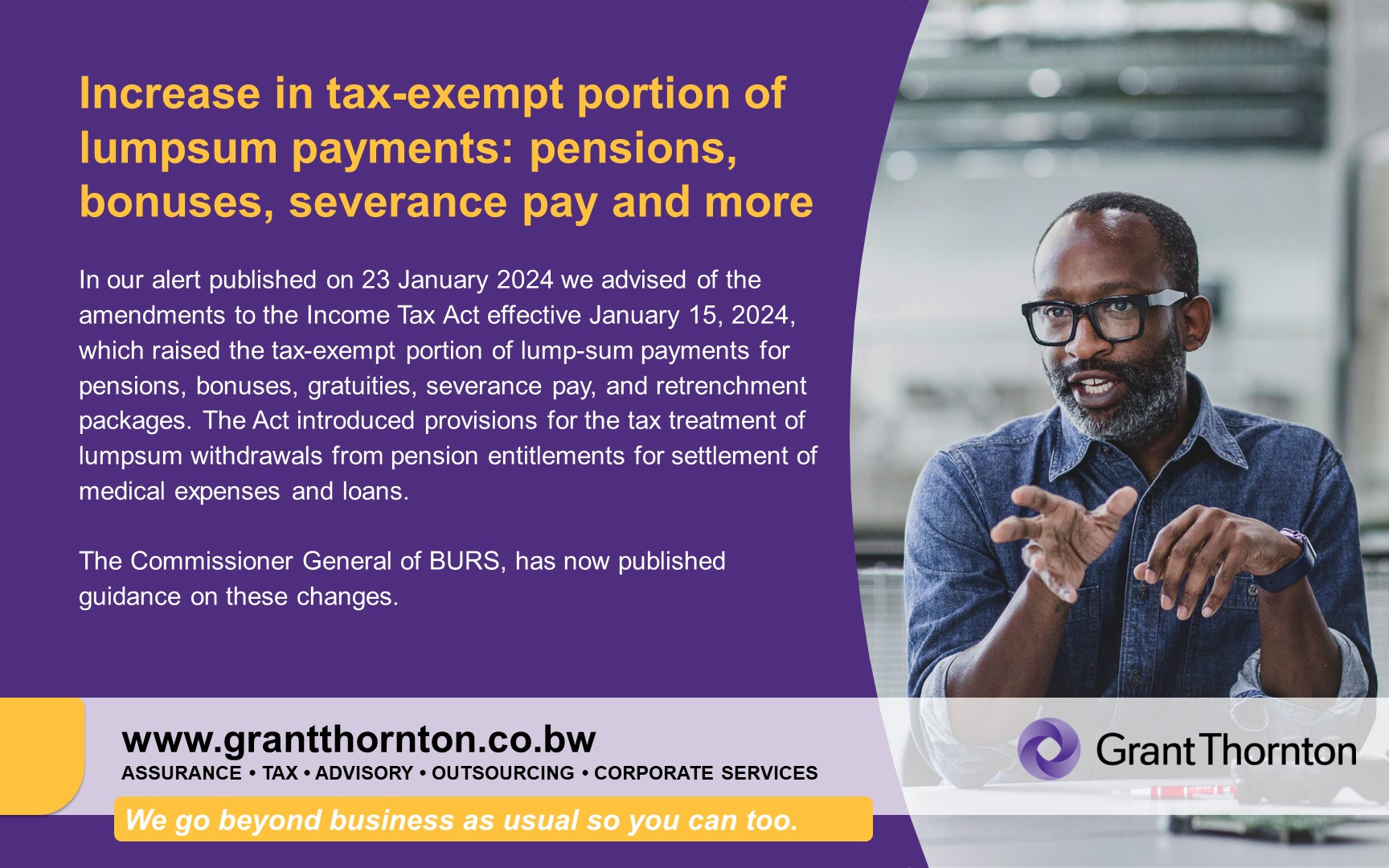 Increase in tax-exempt portion of lumpsum payments: pensions, bonuses, severance pay and.....