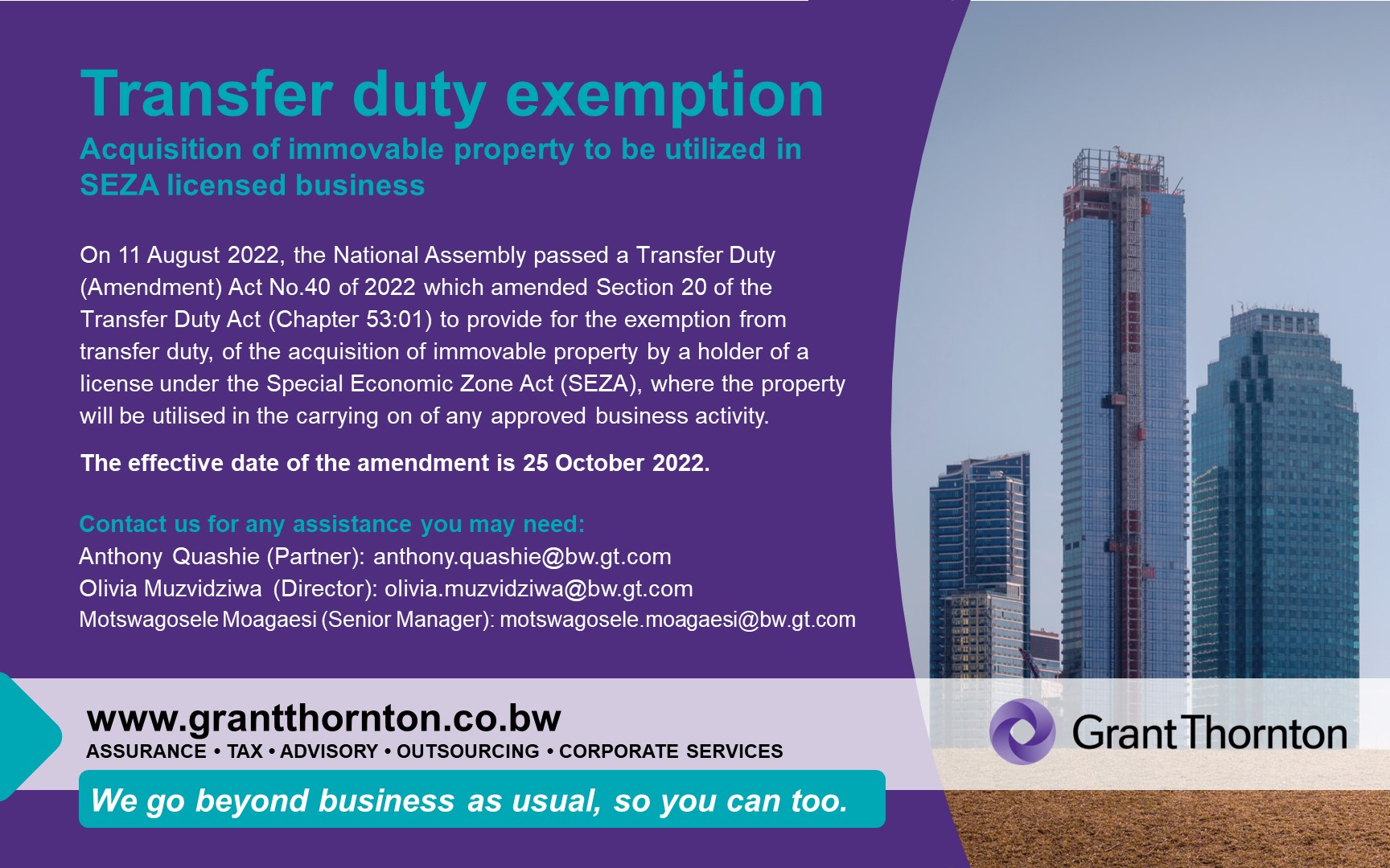 To view the Transfer Duty (Ammendment) Act, click on this link: Transfer Duty (Ammendment) Act 2022 [ 37 kb ]